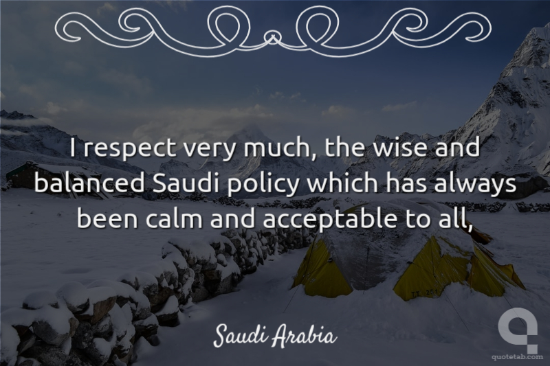 I respect very much, the wise and balanced Saudi policy which has always been calm and acceptable to all,