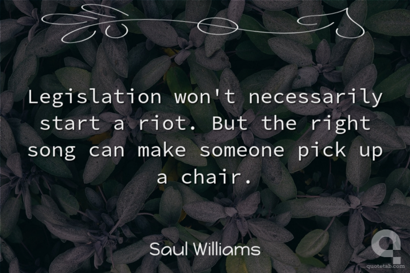 Legislation won't necessarily start a riot. But the right song can make someone pick up a chair.