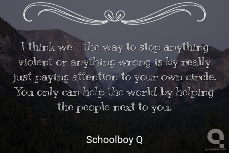 I think we - the way to stop anything violent or anything wrong is by really just paying attention to your own circle. You only can help the world by helping the people next to you.