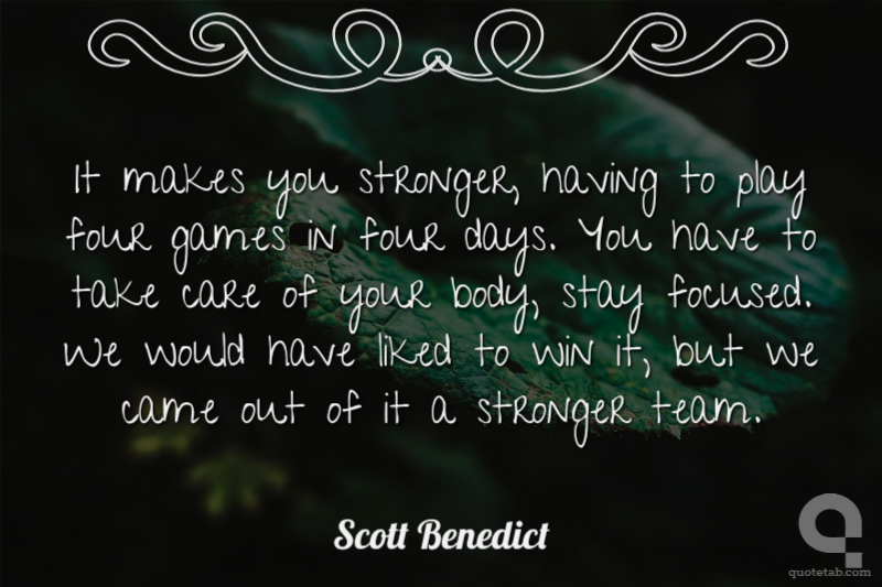 It makes you stronger, having to play four games in four days. You have to take care of your body, stay focused. We would have liked to win it, but we came out of it a stronger team.
