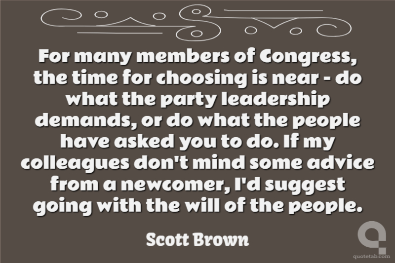 For many members of Congress, the time for choosing is near - do what the party leadership demands, or do what the people have asked you to do. If my colleagues don't mind some advice from a newcomer, I'd suggest going with the will of the people.