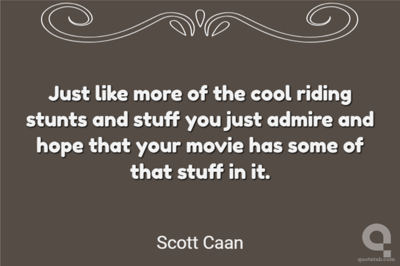 Just like more of the cool riding stunts and stuff you just admire and hope that your movie has some of that stuff in it.