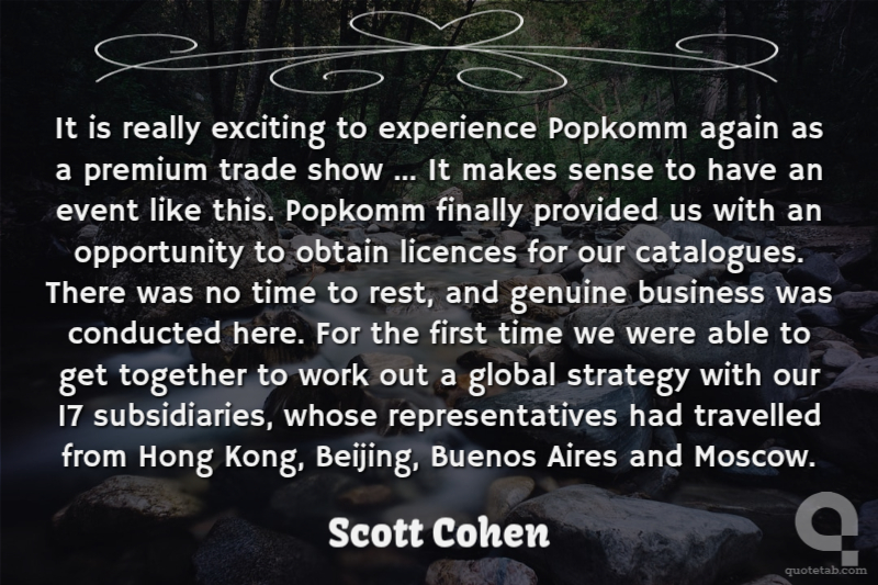 It is really exciting to experience Popkomm again as a premium trade show ... It makes sense to have an event like this. Popkomm finally provided us with an opportunity to obtain licences for our catalogues. There was no time to rest, and genuine business was conducted here. For the first time we were able to get together to work out a global strategy with our 17 subsidiaries, whose representatives had travelled from Hong Kong, Beijing, Buenos Aires and Moscow.