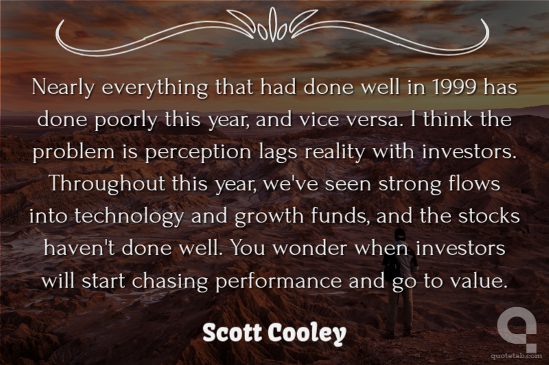 Nearly everything that had done well in 1999 has done poorly this year, and vice versa. I think the problem is perception lags reality with investors. Throughout this year, we've seen strong flows into technology and growth funds, and the stocks haven't done well. You wonder when investors will start chasing performance and go to value.