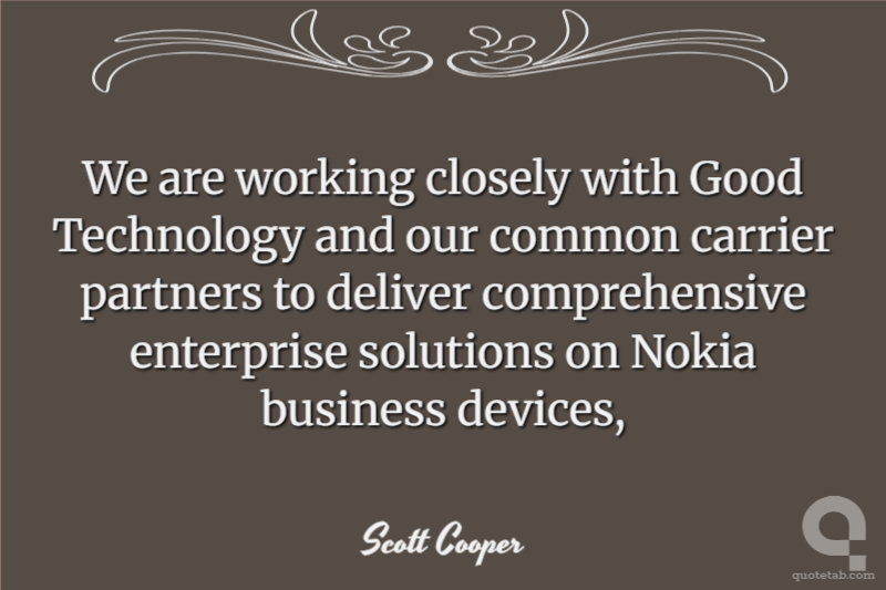 We are working closely with Good Technology and our common carrier partners to deliver comprehensive enterprise solutions on Nokia business devices,