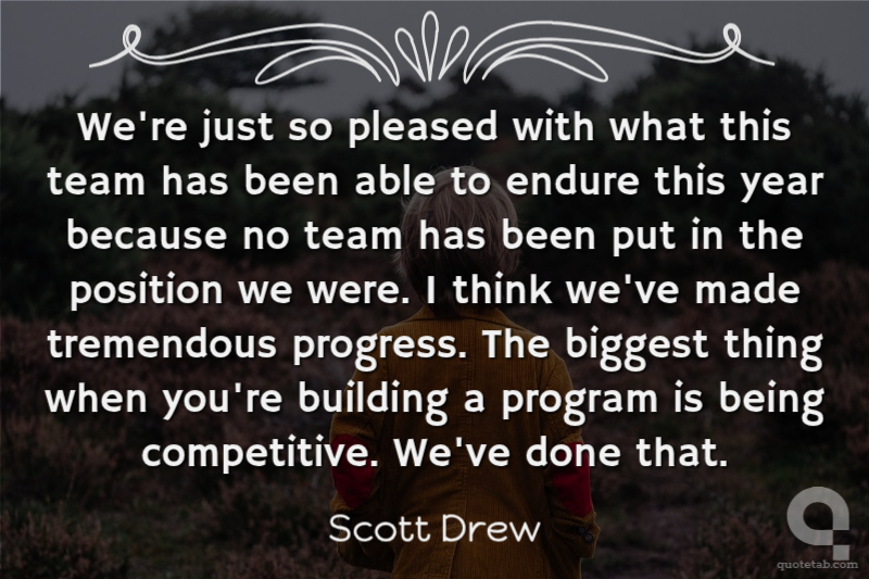 We're just so pleased with what this team has been able to endure this year because no team has been put in the position we were. I think we've made tremendous progress. The biggest thing when you're building a program is being competitive. We've done that.
