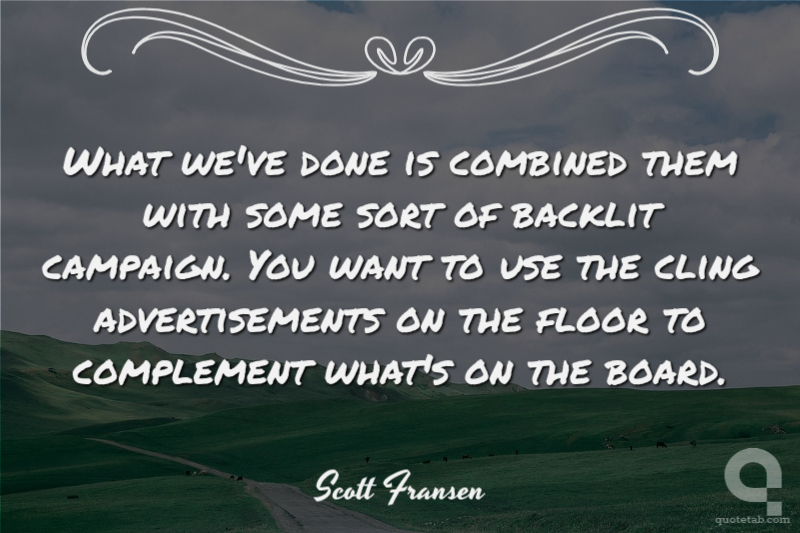 What we've done is combined them with some sort of backlit campaign. You want to use the cling advertisements on the floor to complement what's on the board.