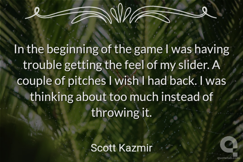 In the beginning of the game, I had trouble with the feel on my slider. I was hanging a lot of them and I couldn't get it down. There were a couple of pitches I wish I had back.