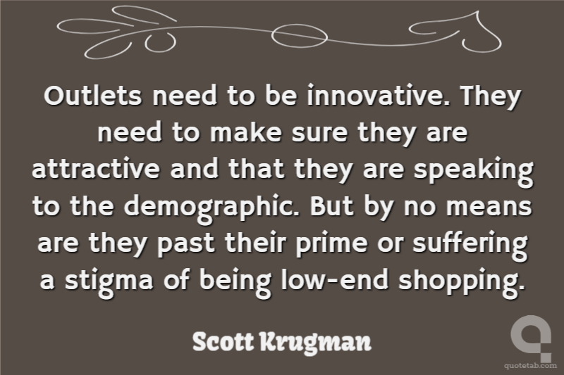 Outlets need to be innovative. They need to make sure they are attractive and that they are speaking to the demographic. But by no means are they past their prime or suffering a stigma of being low-end shopping.