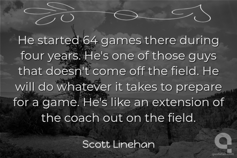 He started 64 games there during four years. He's one of those guys that doesn't come off the field. He will do whatever it takes to prepare for a game. He's like an extension of the coach out on the field.