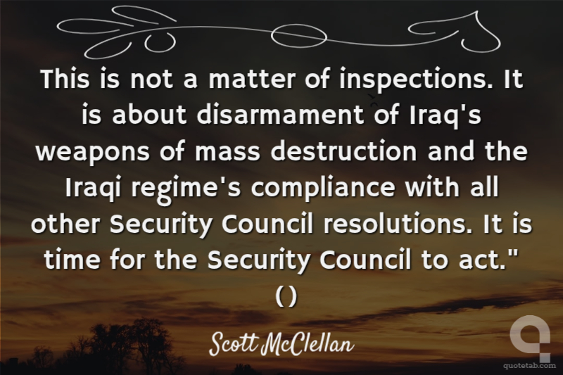This is not a matter of inspections. It is about disarmament of Iraq's weapons of mass destruction and the Iraqi regime's compliance with all other Security Council resolutions. It is time for the Security Council to act." ()