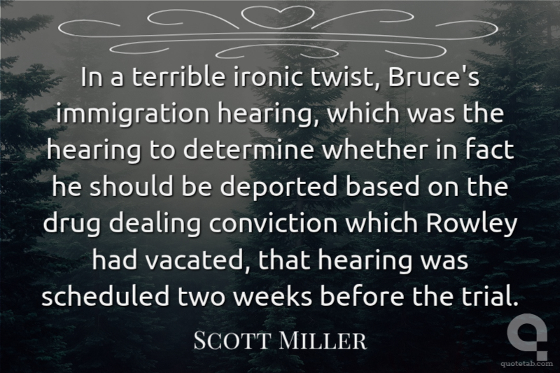 In a terrible ironic twist, Bruce's immigration hearing, which was the hearing to determine whether in fact he should be deported based on the drug dealing conviction which Rowley had vacated, that hearing was scheduled two weeks before the trial.