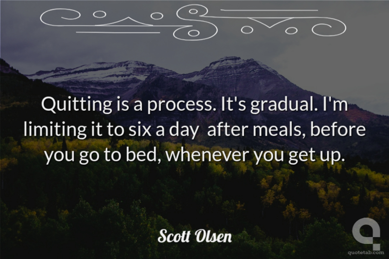 Quitting is a process. It's gradual. I'm limiting it to six a day after meals, before you go to bed, whenever you get up.