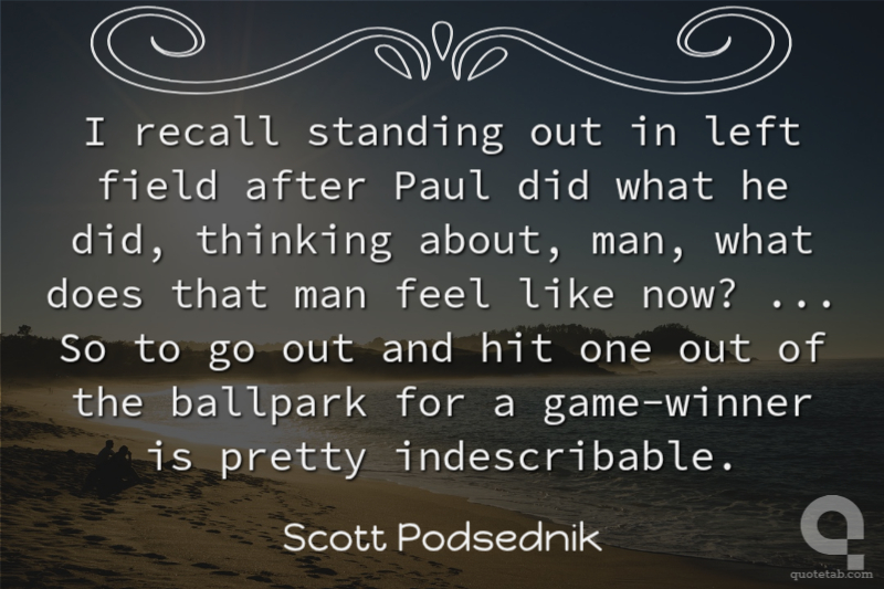 I recall standing out in left field after Paul did what he did, thinking about, man, what does that man feel like now? ... So to go out and hit one out of the ballpark for a game-winner is pretty indescribable.