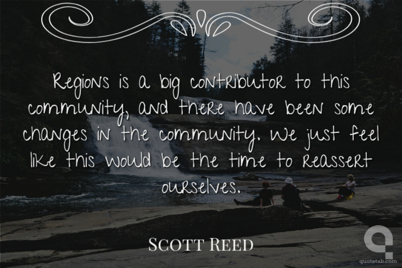 Regions is a big contributor to this community, and there have been some changes in the community. We just feel like this would be the time to reassert ourselves.