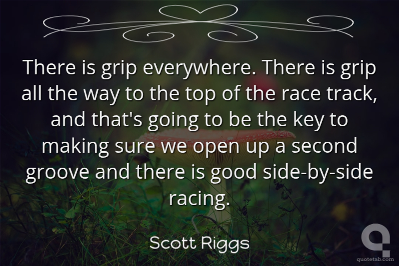 There is grip everywhere. There is grip all the way to the top of the race track, and that's going to be the key to making sure we open up a second groove and there is good side-by-side racing.