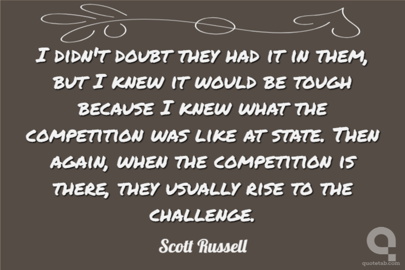 I didn't doubt they had it in them, but I knew it would be tough because I knew what the competition was like at state. Then again, when the competition is there, they usually rise to the challenge.