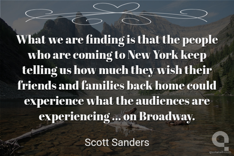 What we are finding is that the people who are coming to New York keep telling us how much they wish their friends and families back home could experience what the audiences are experiencing ... on Broadway.