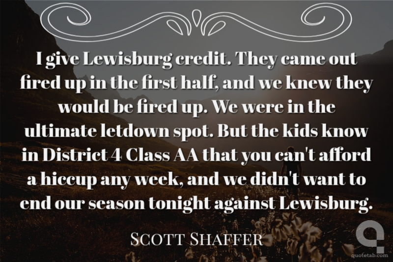 I give Lewisburg credit. They came out fired up in the first half, and we knew they would be fired up. We were in the ultimate letdown spot. But the kids know in District 4 Class AA that you can't afford a hiccup any week, and we didn't want to end our season tonight against Lewisburg.