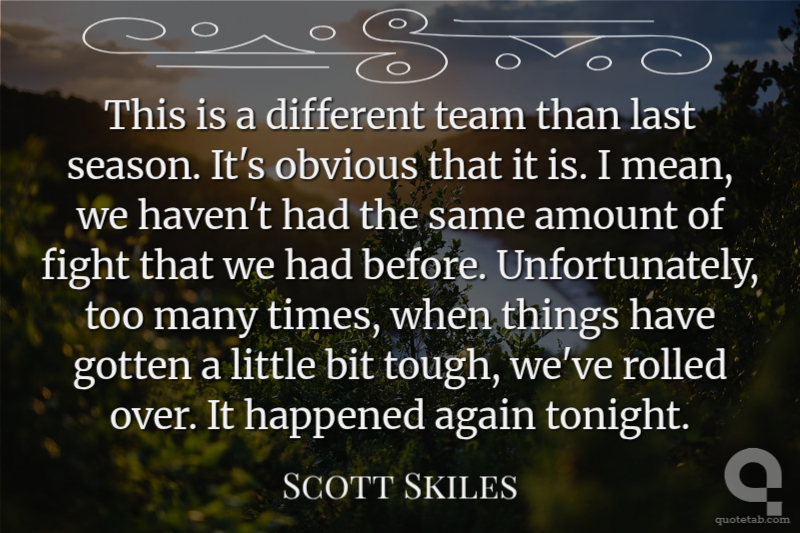 This is a different team than last season. It's obvious that it is. I mean, we haven't had the same amount of fight that we had before. Unfortunately, too many times, when things have gotten a little bit tough, we've rolled over. It happened again tonight.