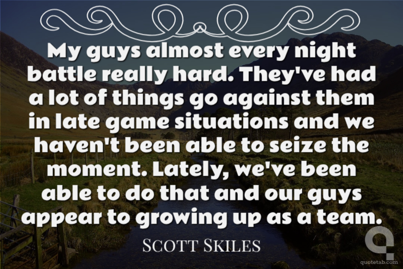 My guys almost every night battle really hard. They've had a lot of things go against them in late game situations and we haven't been able to seize the moment. Lately, we've been able to do that and our guys appear to growing up as a team.