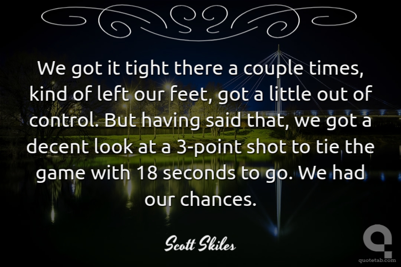 We got it tight there a couple times, kind of left our feet, got a little out of control. But having said that, we got a decent look at a 3-point shot to tie the game with 18 seconds to go. We had our chances.