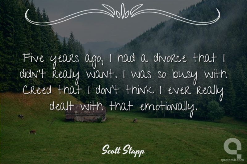 Five years ago, I had a divorce that I didn't really want. I was so busy with Creed that I don't think I ever really dealt with that emotionally.