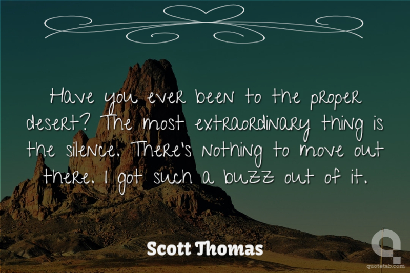 Have you ever been to the proper desert? The most extraordinary thing is the silence. There's nothing to move out there. I got such a buzz out of it.