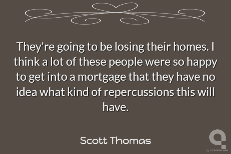 They're going to be losing their homes. I think a lot of these people were so happy to get into a mortgage that they have no idea what kind of repercussions this will have.