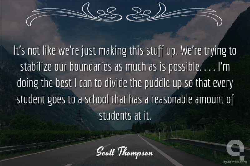 It's not like we're just making this stuff up. We're trying to stabilize our boundaries as much as is possible. . . . I'm doing the best I can to divide the puddle up so that every student goes to a school that has a reasonable amount of students at it.