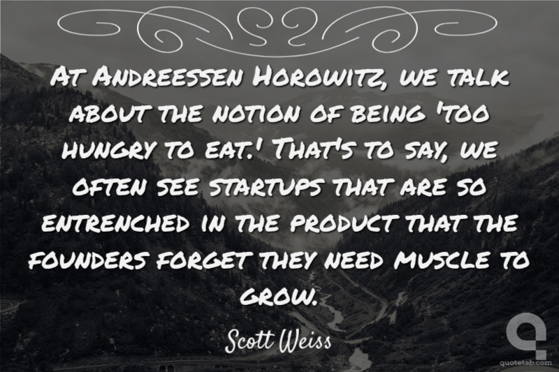 At Andreessen Horowitz, we talk about the notion of being 'too hungry to eat.' That's to say, we often see startups that are so entrenched in the product that the founders forget they need muscle to grow.