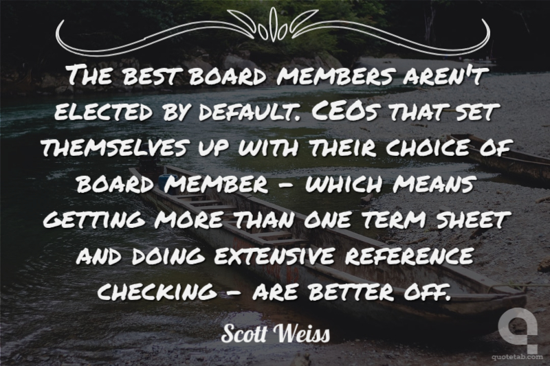 The best board members aren't elected by default. CEOs that set themselves up with their choice of board member - which means getting more than one term sheet and doing extensive reference checking - are better off.