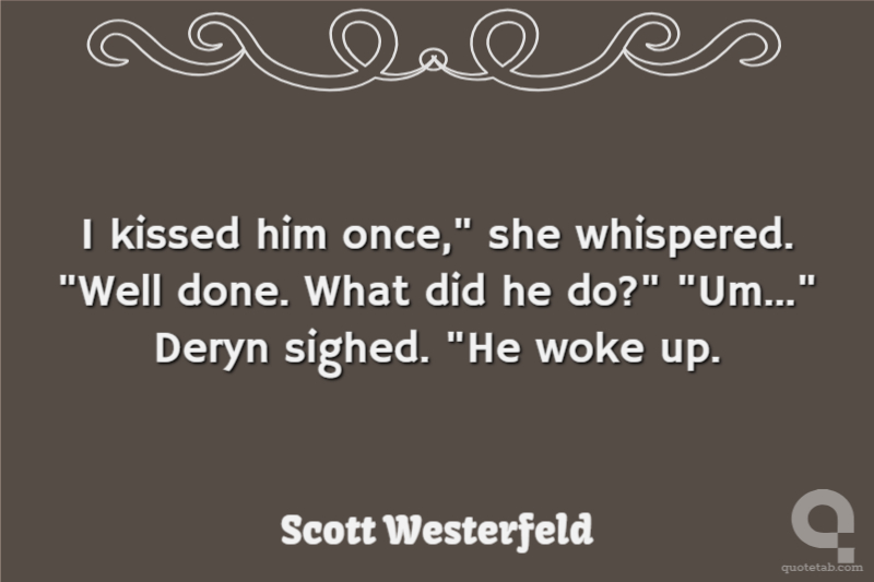 I kissed him once," she whispered. "Well done. What did he do?" "Um..." Deryn sighed. "He woke up.