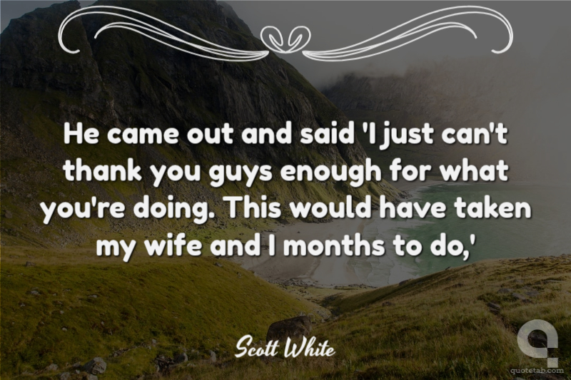 He came out and said 'I just can't thank you guys enough for what you're doing. This would have taken my wife and I months to do,'