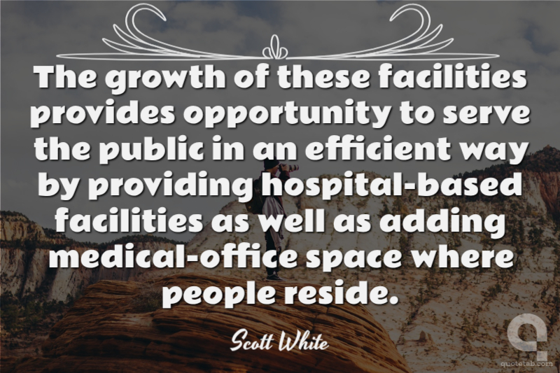 The growth of these facilities provides opportunity to serve the public in an efficient way by providing hospital-based facilities as well as adding medical-office space where people reside.