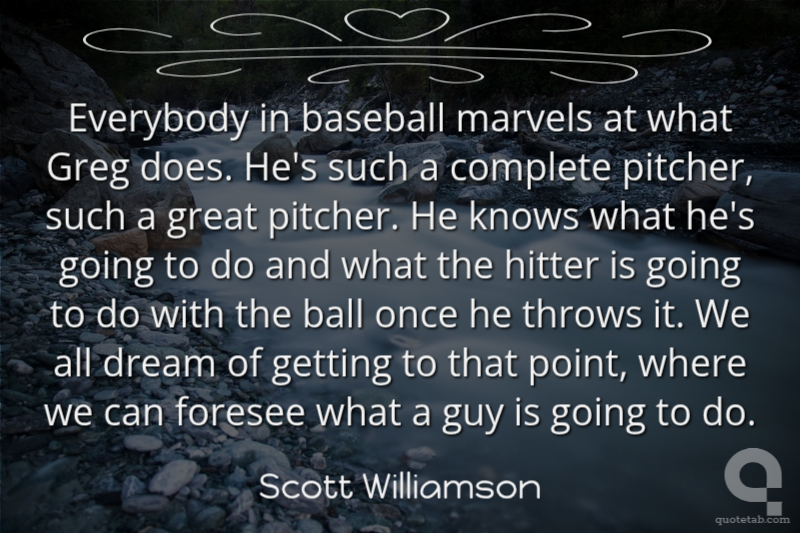 Everybody in baseball marvels at what Greg does. He's such a complete pitcher, such a great pitcher. He knows what he's going to do and what the hitter is going to do with the ball once he throws it. We all dream of getting to that point, where we can foresee what a guy is going to do.