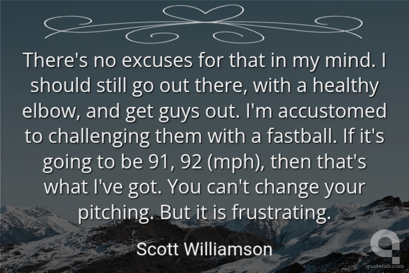 There's no excuses for that in my mind. I should still go out there, with a healthy elbow, and get guys out. I'm accustomed to challenging them with a fastball. If it's going to be 91, 92 (mph), then that's what I've got. You can't change your pitching. But it is frustrating.