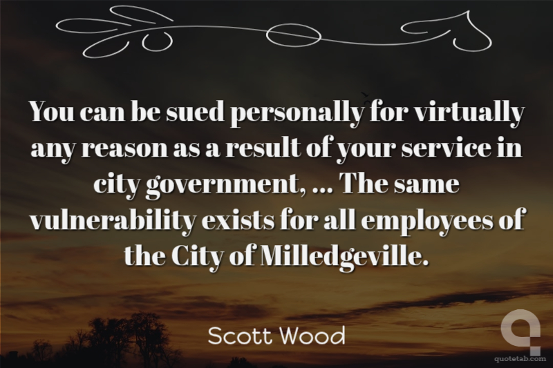 You can be sued personally for virtually any reason as a result of your service in city government, ... The same vulnerability exists for all employees of the City of Milledgeville.