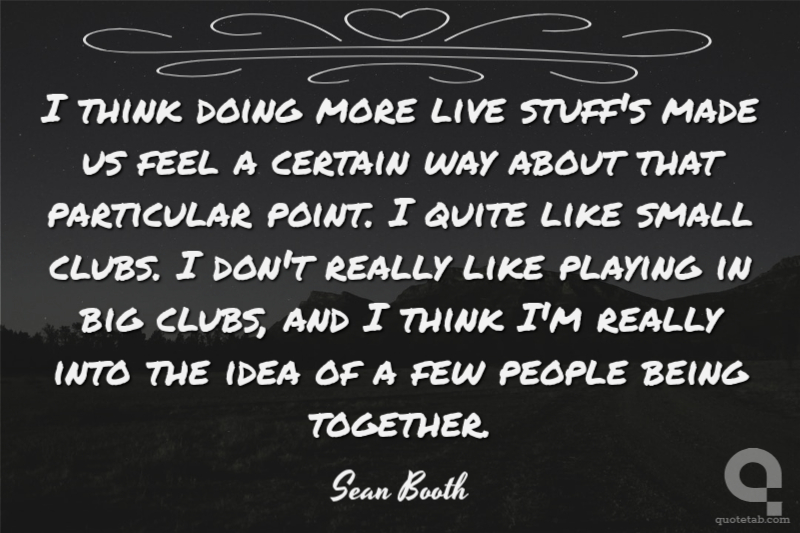 I think doing more live stuff's made us feel a certain way about that particular point. I quite like small clubs. I don't really like playing in big clubs, and I think I'm really into the idea of a few people being together.