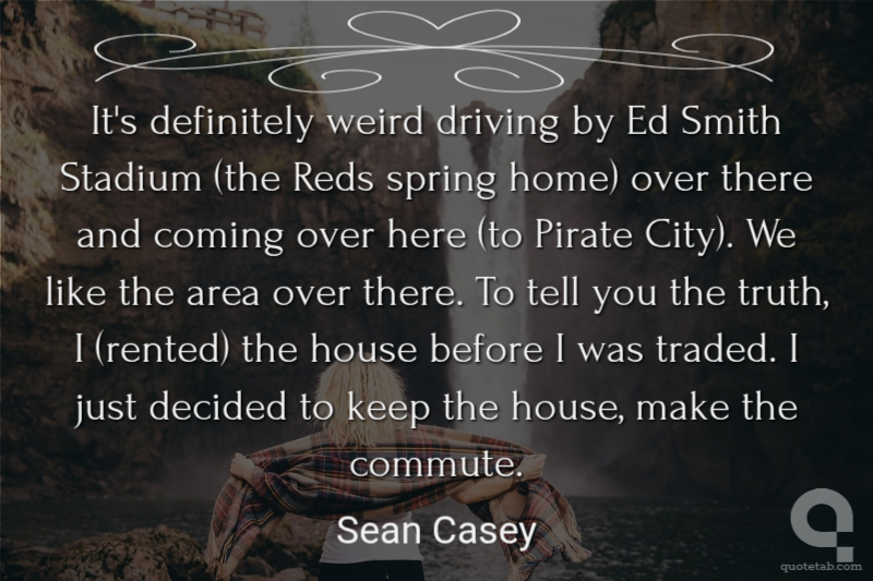 It's definitely weird driving by Ed Smith Stadium (the Reds spring home) over there and coming over here (to Pirate City). We like the area over there. To tell you the truth, I (rented) the house before I was traded. I just decided to keep the house, make the commute.
