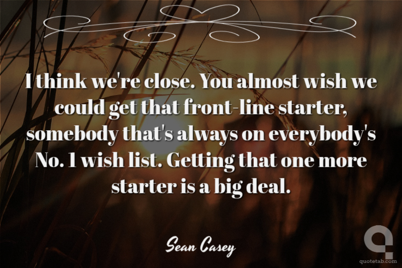 I think we're close. You almost wish we could get that front-line starter, somebody that's always on everybody's No. 1 wish list. Getting that one more starter is a big deal.
