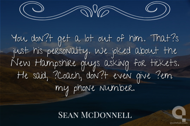 You don?t get a lot out of him. That?s just his personality. We joked about the New Hampshire guys asking for tickets. He said, ?Coach, don?t even give ?em my phone number.