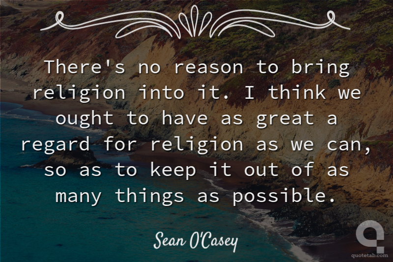 There's no reason to bring religion into it. I think we ought to have as great a regard for religion as we can, so as to keep it out of as many things as possible.