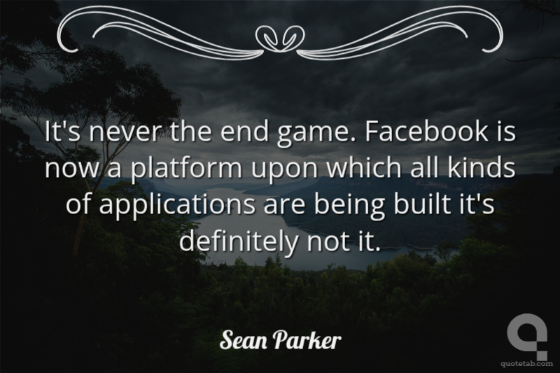 It's never the end game. Facebook is now a platform upon which all kinds of applications are being built it's definitely not it.