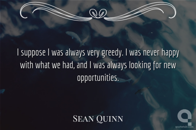 I suppose I was always very greedy. I was never happy with what we had, and I was always looking for new opportunities.