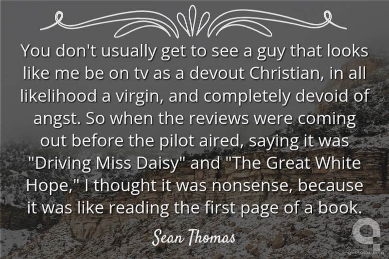 You don't usually get to see a guy that looks like me be on tv as a devout Christian, in all likelihood a virgin, and completely devoid of angst. So when the reviews were coming out before the pilot aired, saying it was "Driving Miss Daisy" and "The Great White Hope," I thought it was nonsense, because it was like reading the first page of a book.