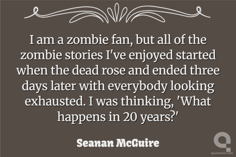 I am a zombie fan, but all of the zombie stories I've enjoyed started when the dead rose and ended three days later with everybody looking exhausted. I was thinking, 'What happens in 20 years?'