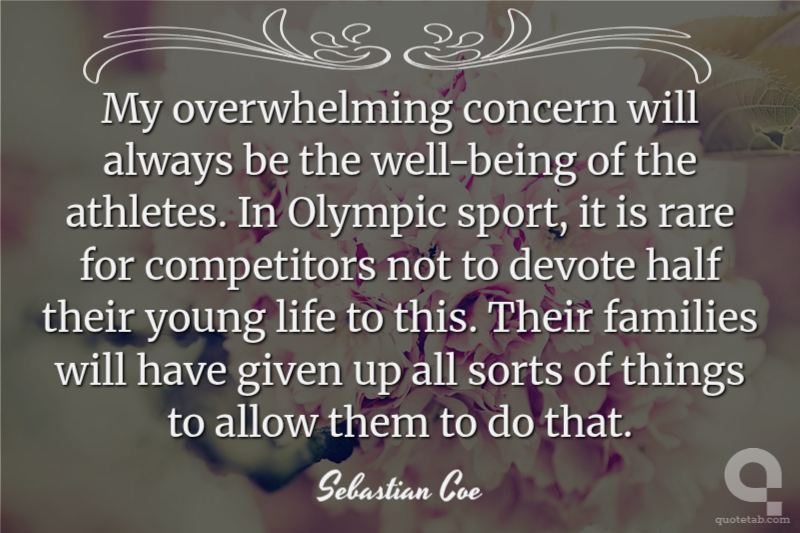 My overwhelming concern will always be the well-being of the athletes. In Olympic sport, it is rare for competitors not to devote half their young life to this. Their families will have given up all sorts of things to allow them to do that.