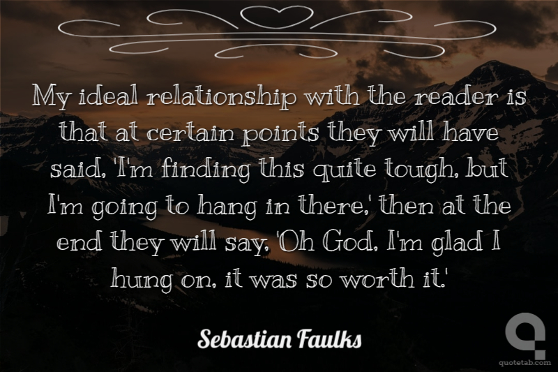 My ideal relationship with the reader is that at certain points they will have said, 'I'm finding this quite tough, but I'm going to hang in there,' then at the end they will say, 'Oh God, I'm glad I hung on, it was so worth it.'