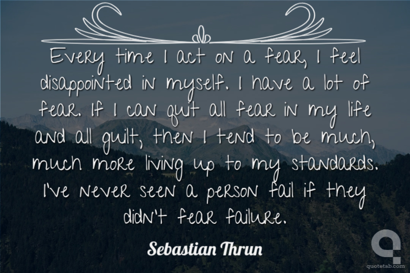 Every time I act on a fear, I feel disappointed in myself. I have a lot of fear. If I can quit all fear in my life and all guilt, then I tend to be much, much more living up to my standards. I've never seen a person fail if they didn't fear failure.